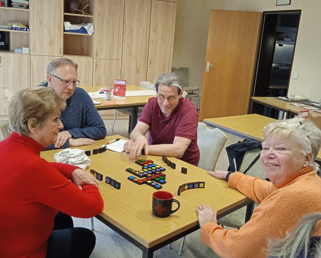 Besonders unterstützt werden die Gäste dabei von Andy, einem ehrenamtlichen Helfer mit großer Leidenschaft für Gesellschaftsspiele. Er hilft dabei, die passenden Spielpartner zu finden und bringt regelmäßig neue und interessante Spiele mit. „Mir ist wichtig, dass jeder seinen Platz findet und sich wohlfühlt“, sagt er. „Und wenn jemand ein eigenes Spiel mitbringen möchte – umso besser! So kommt immer wieder schöne Abwechslung hinein.“
