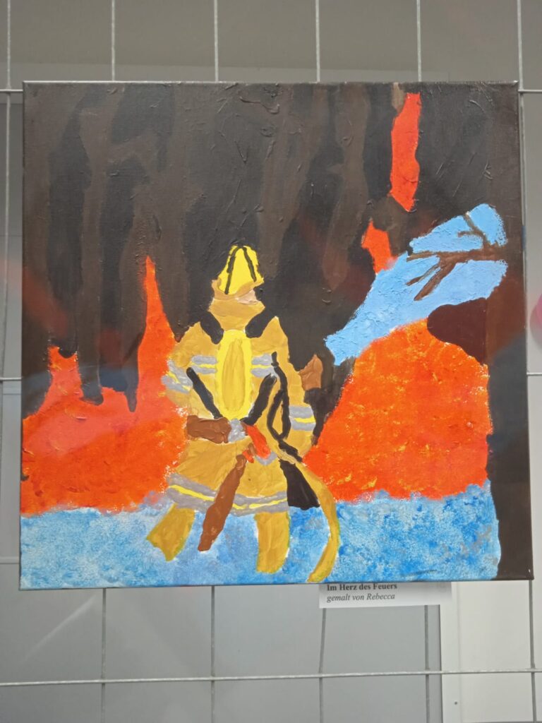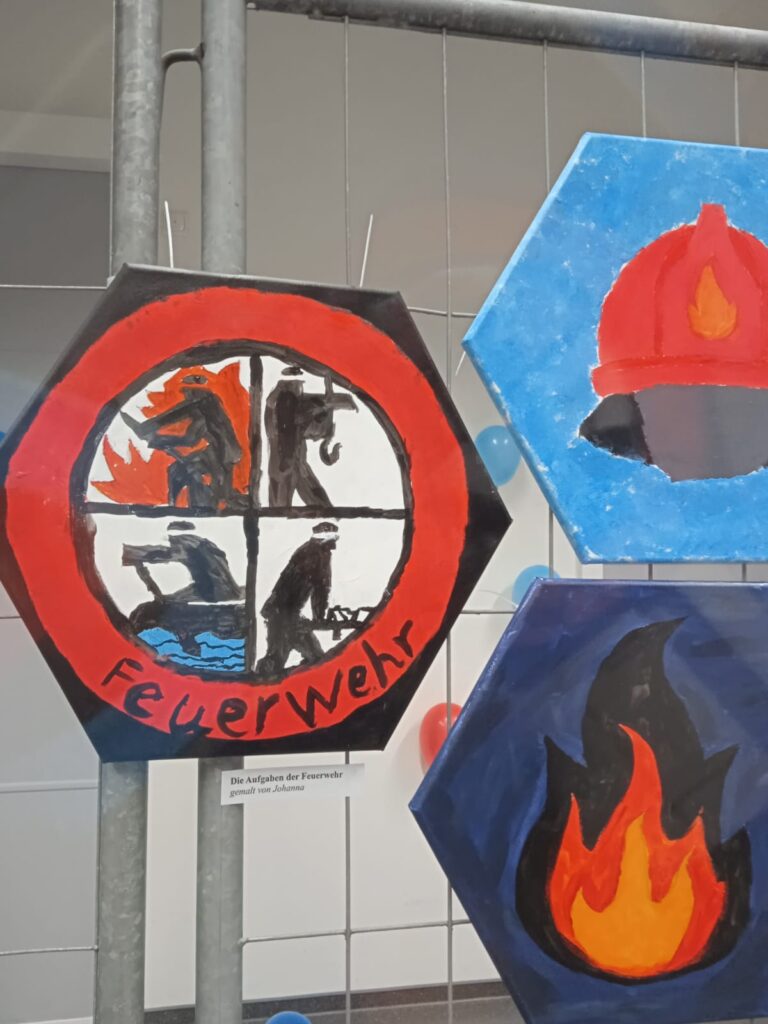Die Bilder entstanden im Rahmen des Quartiersprojektes des DRK Stadtverbandes Lüdenscheid e.V. in Brügge und entstanden aus dem Kontakt der Kinder mit der Freiwilligen Feuerwehr vor Ort. Hintergrund des Projekts war eine Beobachtung: Der Schulungsraum wirkte auf die jungen Besucher zu sachlich, zu erwachsen. Die Idee reifte, Kunst zu nutzen, um das Thema „Katastrophenvorsorge und Ehrenamt“ greifbar zu machen – und die Räume der Feuerwehr würden mit Kinderkunst zu lebendigem Lernen zurückkehren.