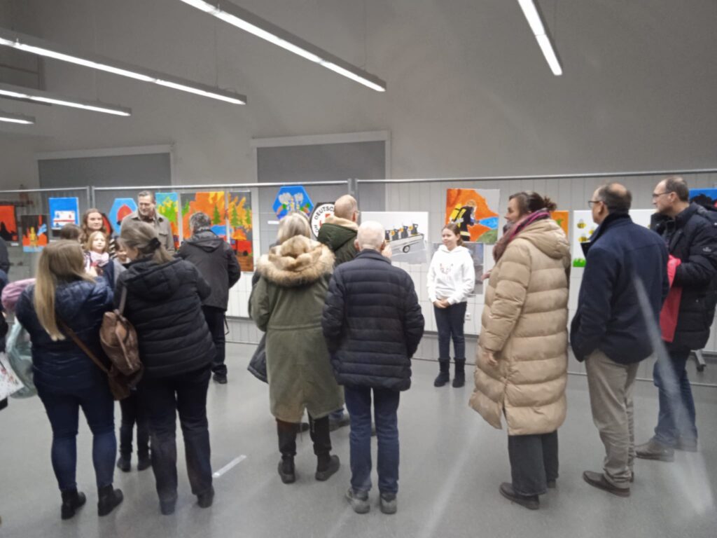 Barbara Schmidt betonte die pädagogische Zielsetzung des Projekts: „Wir möchten das Bewusstsein für Katastrophenvorsorge stärken und gleichzeitig zeigen, dass Ehrenamt und gemeinschaftliches Handeln unsere Gesellschaft tragen.“ Die Vernissage bot dabei Raum für Gespräche über Katastrophenvorsorge, Nachbarschaftshilfe und die Bedeutung des Helfens in jeder Form. Sichtbar wurde dies auch während der Vernissage selbst: das Ehrenamt der Feuerwehr sorgte nämlich vorab mit für den Aufbau, die Helfer des DRK sowie Ehrenamtliche des Digital Cafés Brügge mit somalischen Wurzeln besetzten die Saft- und Candybar. All sie sorgten für eine rundum schöne Veranstaltung.